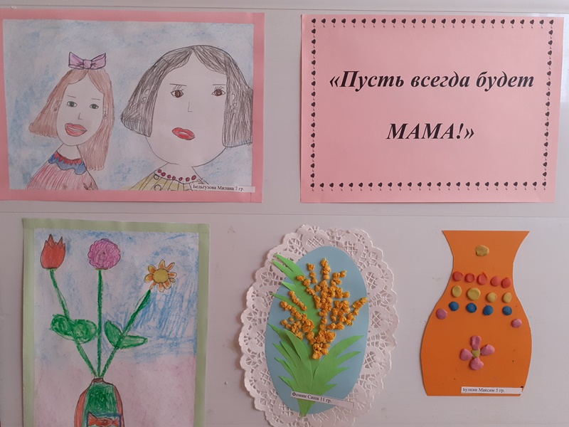 Чтобы порадовать своих любимых мамочек подарками к женскому дню 8 Марта, воспитанники нашего детского сада устроили выставку творческих работ "Пусть всегда будет мама!".