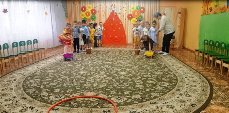 Весело и ярко прошли осенние развлечения в старших группах №10 и №11. Дети сумели победить коварство Тучки-злючки и расколдовали зонтик Осени. Они доказали, что знают какие листья растут на березе и клене, а как же оказывается весело бегать в калошах! За звонкие песни и задорные танцы Осень отблагодарила ребят своими дарами - румяными яблоками.