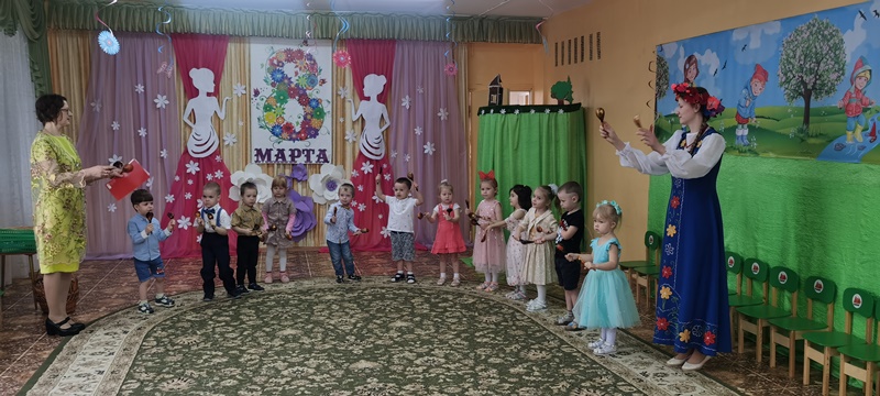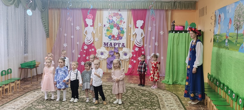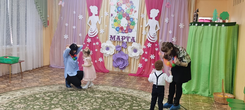 Сегодня малыши групп № 7 и № 9 поздравили своих мам и бабушек с наступающим праздником 8 Марта. В подарок мамочке они выучили стихи, песни и подготовили задорные танцы, а мамы с удовольствием принимали участие в веселых конкурсах. Детки очень старались показать свою любовь к самым близким и дорогим людям. В завершении праздника ребята подарили мамам подарки, сделанные своими руками.