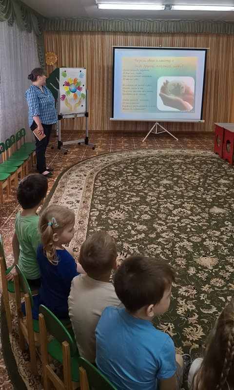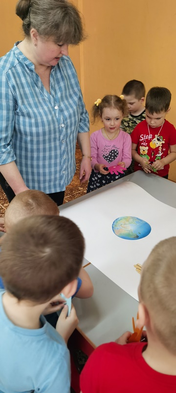 Во всем мире 22 марта по инициативе ООН, празднуется День Земли приуроченный к Дню весеннего равноденствия, он имеет миротворческую и гуманистическую направленность. В этот день дети средней группы № 6 отправились в увлекательное путешествие по нашей Земле: играли в игры, отгадывали загадки, узнали для себя много нового о нашей планете. А в заключении ребята выполнили коллективную аппликацию «Береги и охраняй нашу планету!»