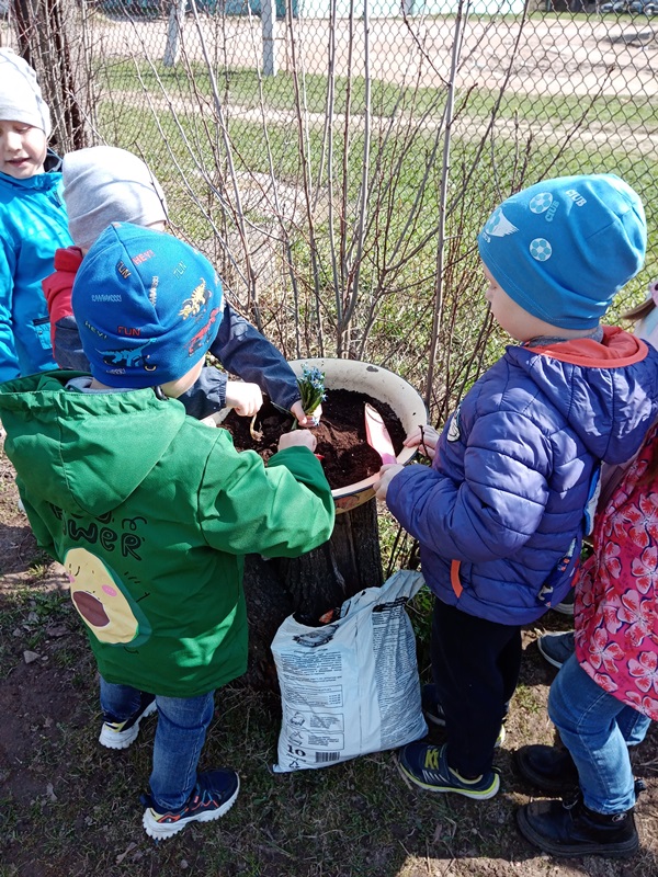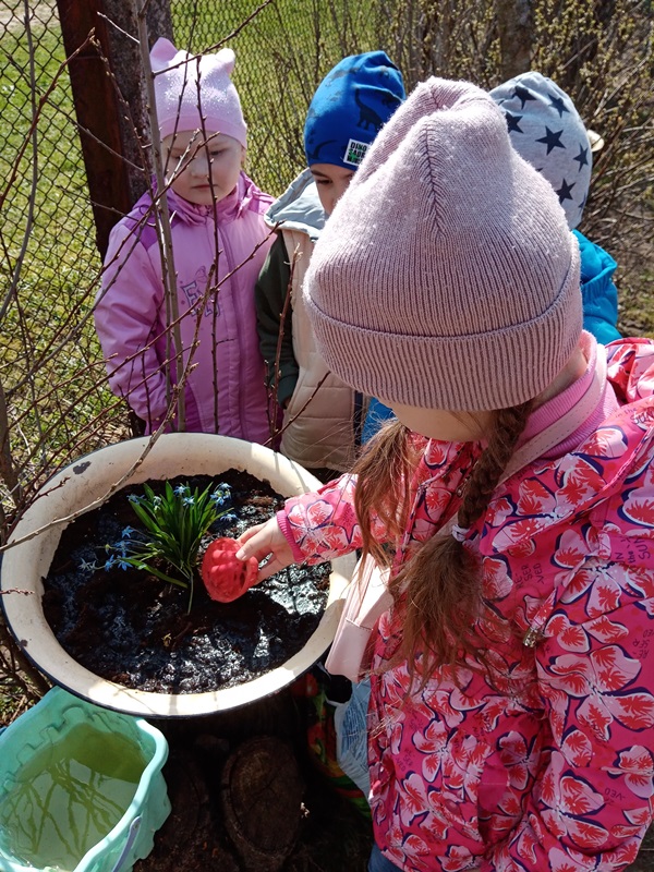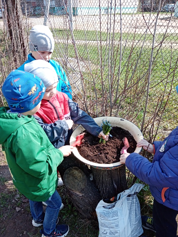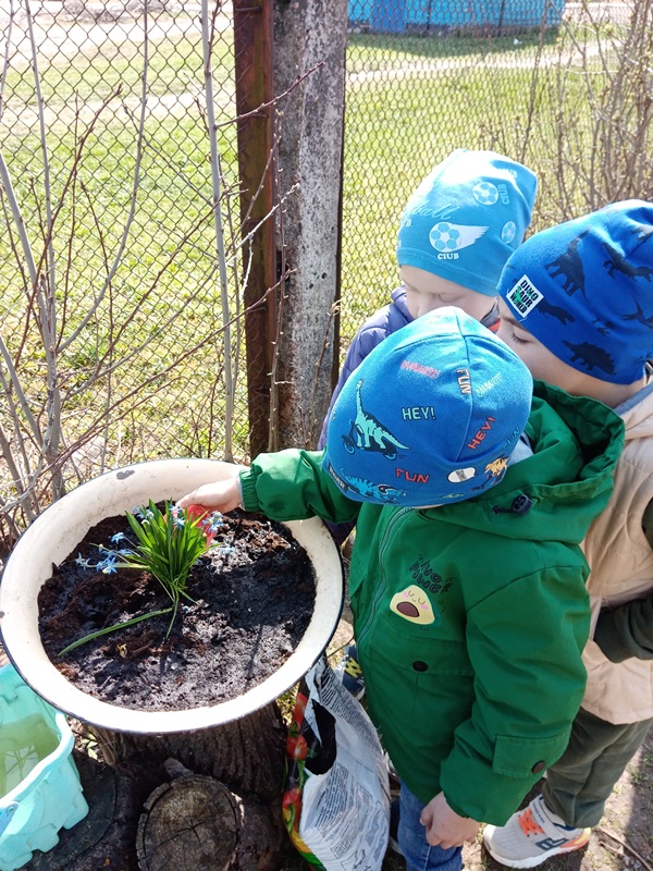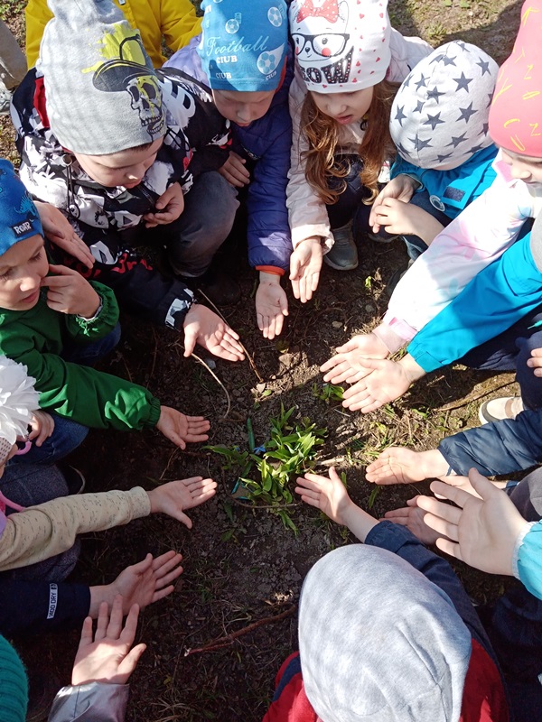 Гуляя по территории детского сада ребята нашли первоцветы и внимательно рассмотрели цветы, а затем мы с детьми решили посадить подснежники на своём участке. Самое главное дети уяснили, что подснежники занесены в Красную книгу. Эти цветы прекрасны только в природе, ведь сорванные цветы «живут» всего несколько дней. Поэтому надо беречь красоту природы и не рвать первоцветы.