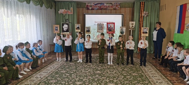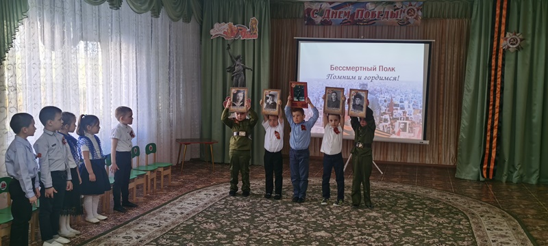 Ребята узнали много интересного из героического прошлого нашей Родины, посмотрели фото и кинохроники, услышали песни военных лет. На празднике дети исполняли стихи, песни о победе, танцевали и играли. Ребята и взрослые минутой молчания почтили память погибших в Великой Отечественной войне.