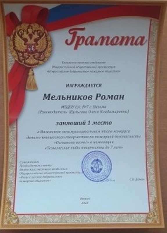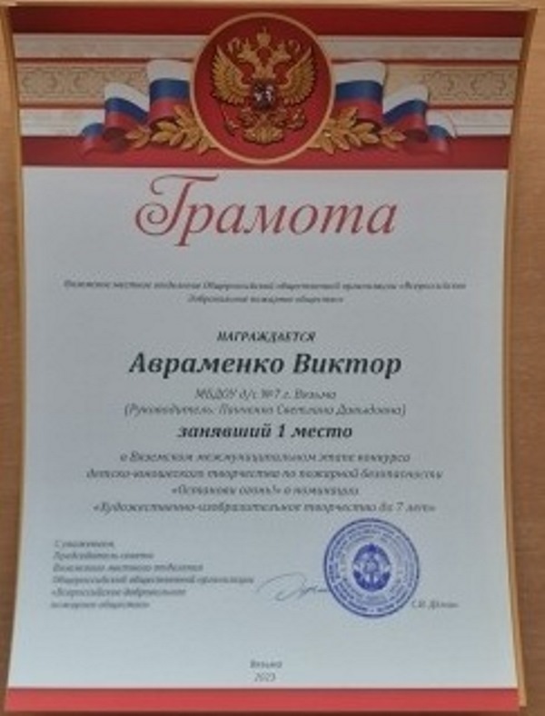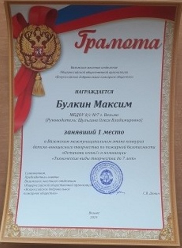 Воспитанники нашего детского сада: Авраменко Виктор занял 1 место в номинация «Художественно-изобразительное творчество», Булкин Максим и Мельников Роман получили 1 место в номинации «Технические виды творчества». Все участники этого замечательного конкурса получили Грамоты и