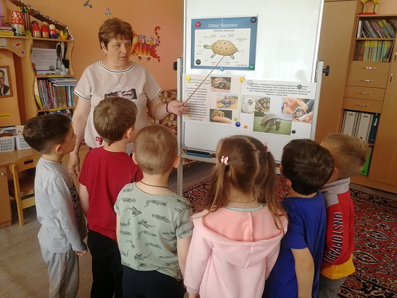 Всемирный день черепахи отметили и воспитанники старшей группы №11. Воспитатель Щукина И.В. рассказала, чем питаются и где живут черепахи, наглядно познакомила со строением черепахи и о важной роли панциря, который спасает от жары и от врагов. С помощью дидактических игр ребята узнали, что черепахи бывают сухопутными и морскими и являются долгожителями.