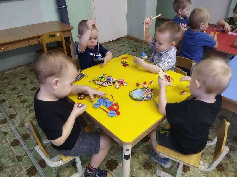 Для малышей группы № 1 была организованно интересное занятие – игра, на котором детки получил массу положительных эмоций. Каждый из них пробовал распределять детали сортера по своим местам, нанизывать разноцветные фигурки на веревочку, ловить магнитные игрушки на удочки, а также формировал навык шнуровки и застежки. Каждый малыш смог проверить свои силы и интересно провести время, а если местами и были затруднения, то воспитатель всегда был рядом.