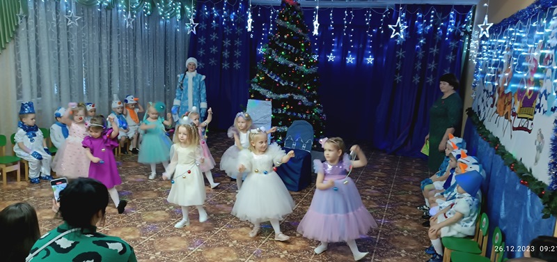 Волшебство и чудеса ждали ребят из средних групп №7 и №9 возле новогодней елки. Снегурочка, Дед Мороз, красавица лисичка и серый волчок танцевали, пели и играли с детьми. Новогоднее развлечение стало для ребят ярким событием, полным положительных эмоций и впечатлений!