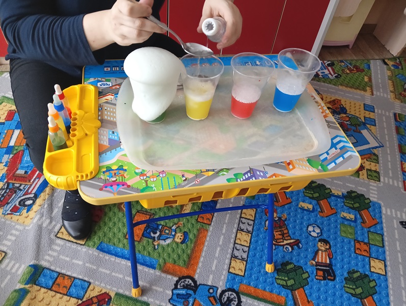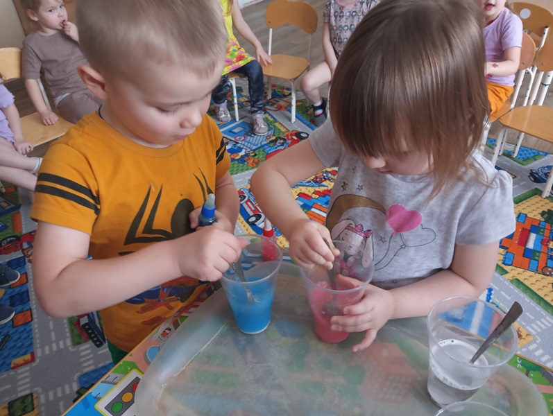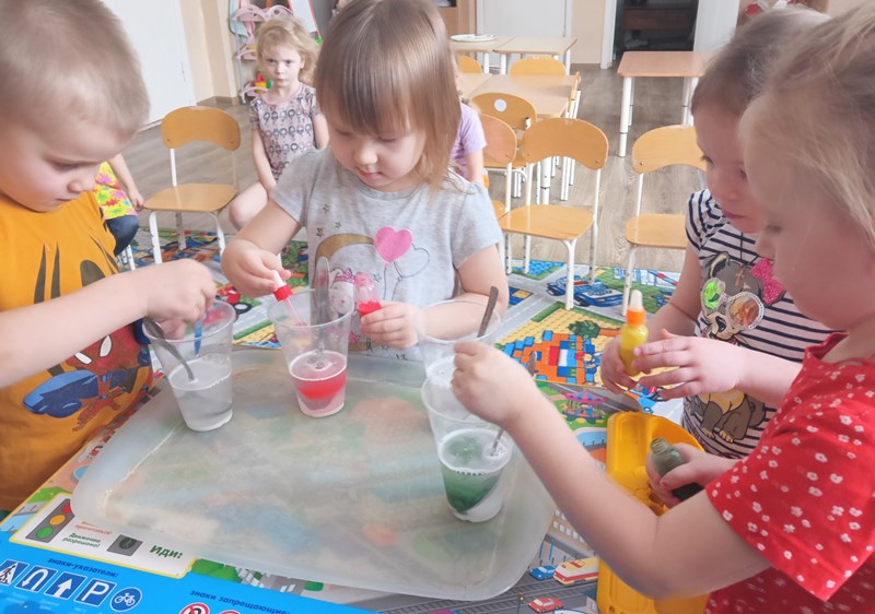 19 февраля в мире отмечают День смешивания красок. Для воспитанников младшей группы № 2 был организован ряд мероприятий посвященных этому дню. Ребята под руководством воспитателей проводили различные эксперименты с красками, целью которых было: заинтересовать детей, показать приёмы смешивания красок, на начальном уровне познакомить с законами физики и способствовать развитию познавательного интереса ребят. Детям очень понравились эксперименты. Каждый хотел принять в них самое непосредственное участие.