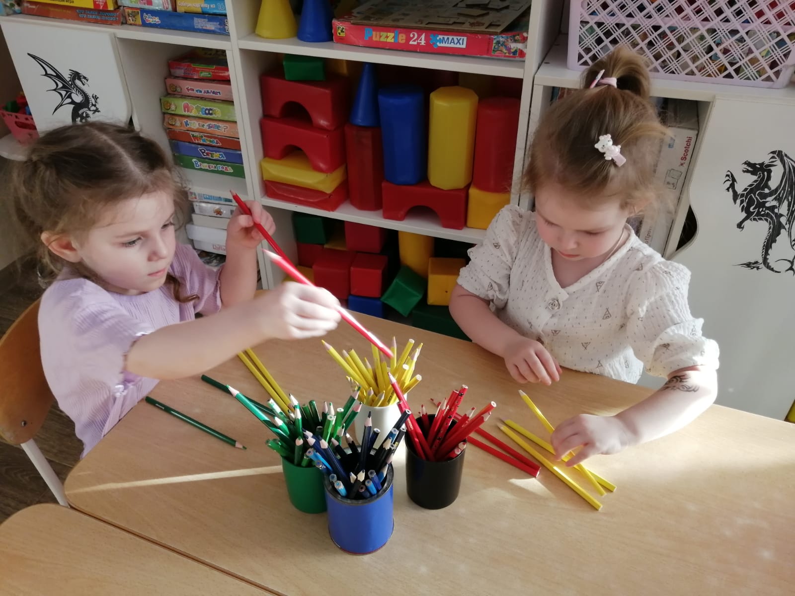Во второй младшей группе №2 прошел тематический день - День цветных карандашей. Ребята рассматривали карандаши, сравнивали их, находили самые длинные и самые короткие, раскладывали их в стаканчики по цветам, выполняли пальчиковую гимнастику с карандашом, слушали сказку о «Мышонке и Карандаше», выкладывали из карандашей фигуры, и, конечно же, с удовольствием рисовали.