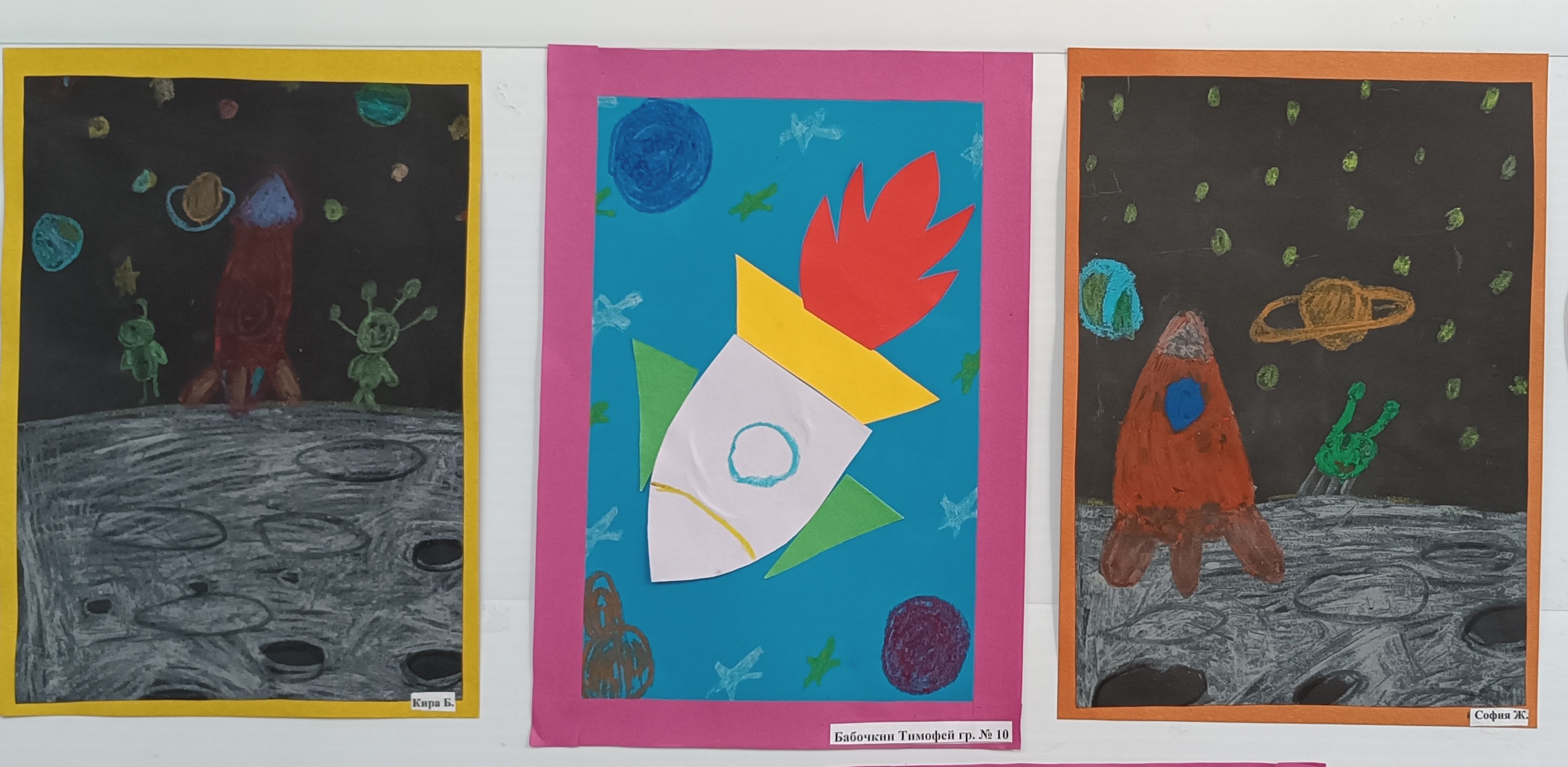 Тема космоса всегда интересна детям, а полученные впечатления нашли отражение в творческих работах наших воспитанников. В рисунках и аппликациях - космические просторы, галактики, планеты и звезды превратились из фантастической реальности в реальность нашего мира. Работы получились очень яркие и запоминающиеся. Фантазия и творчество наших детей не знает границ, каждая работа отличается индивидуальностью и неповторимостью!