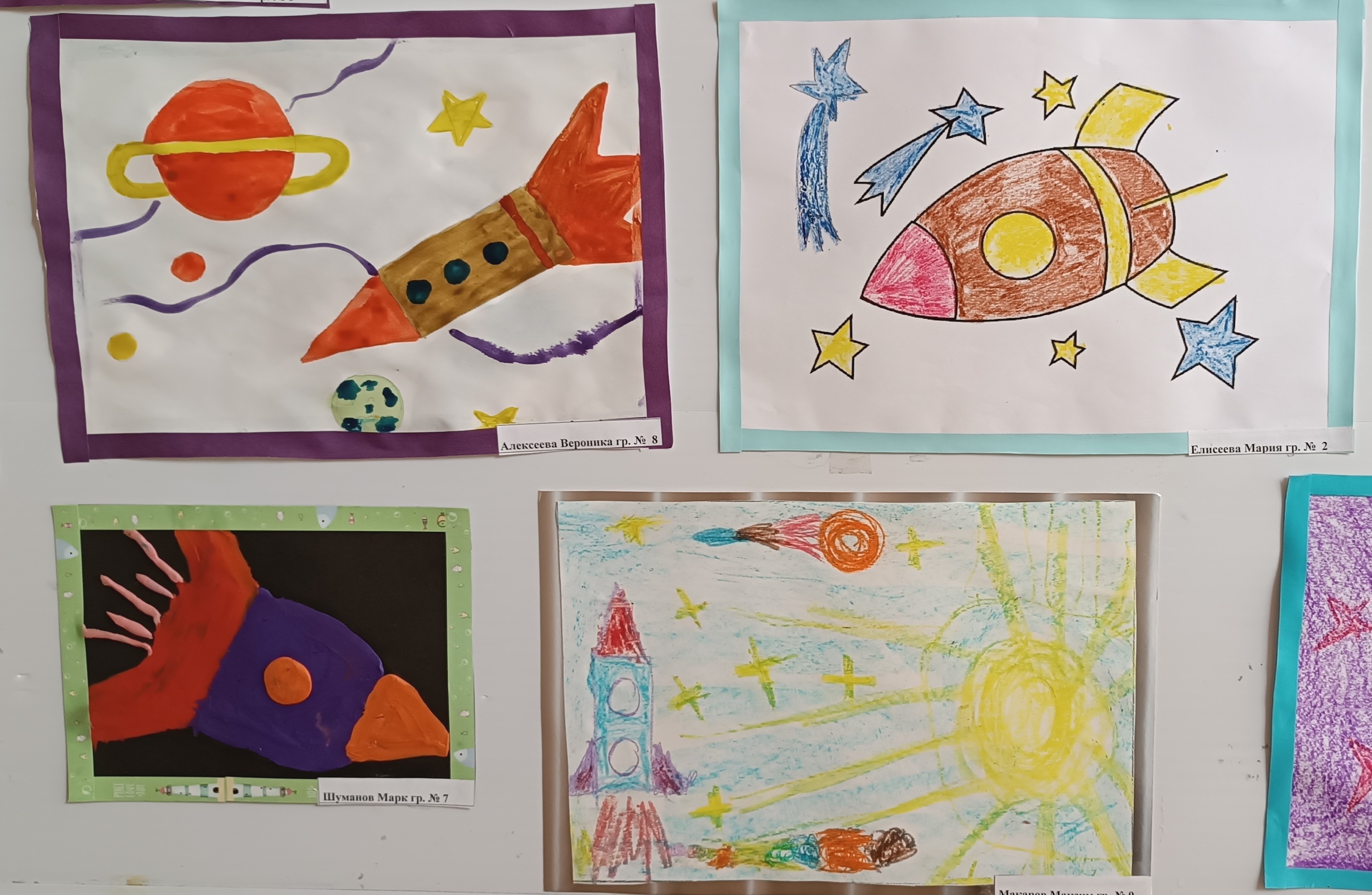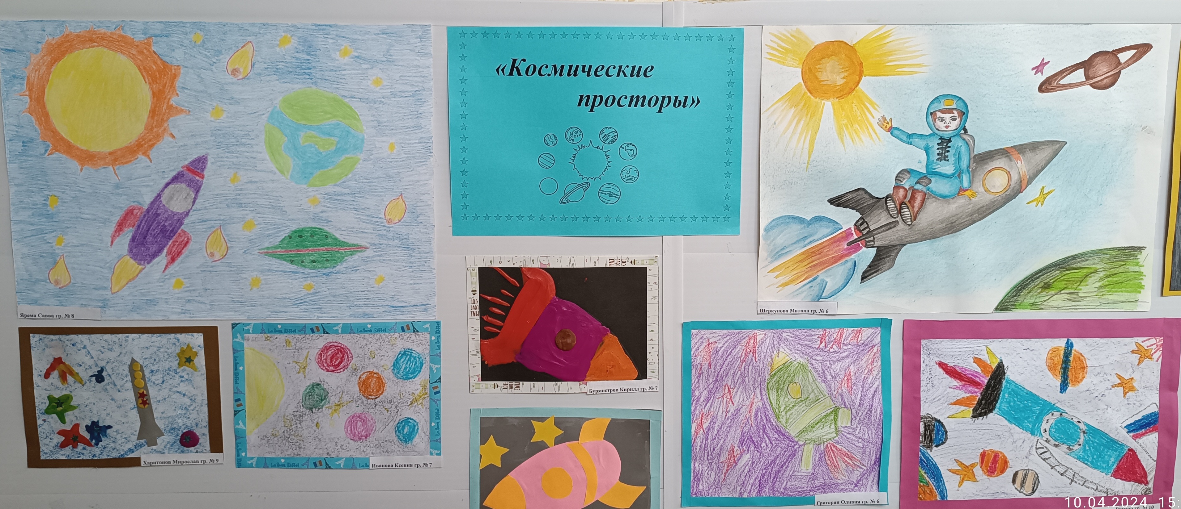 В честь «Всемирного дня авиации и космонавтики» в нашем детском саду была организована выставка работ юных художников «Космические просторы».