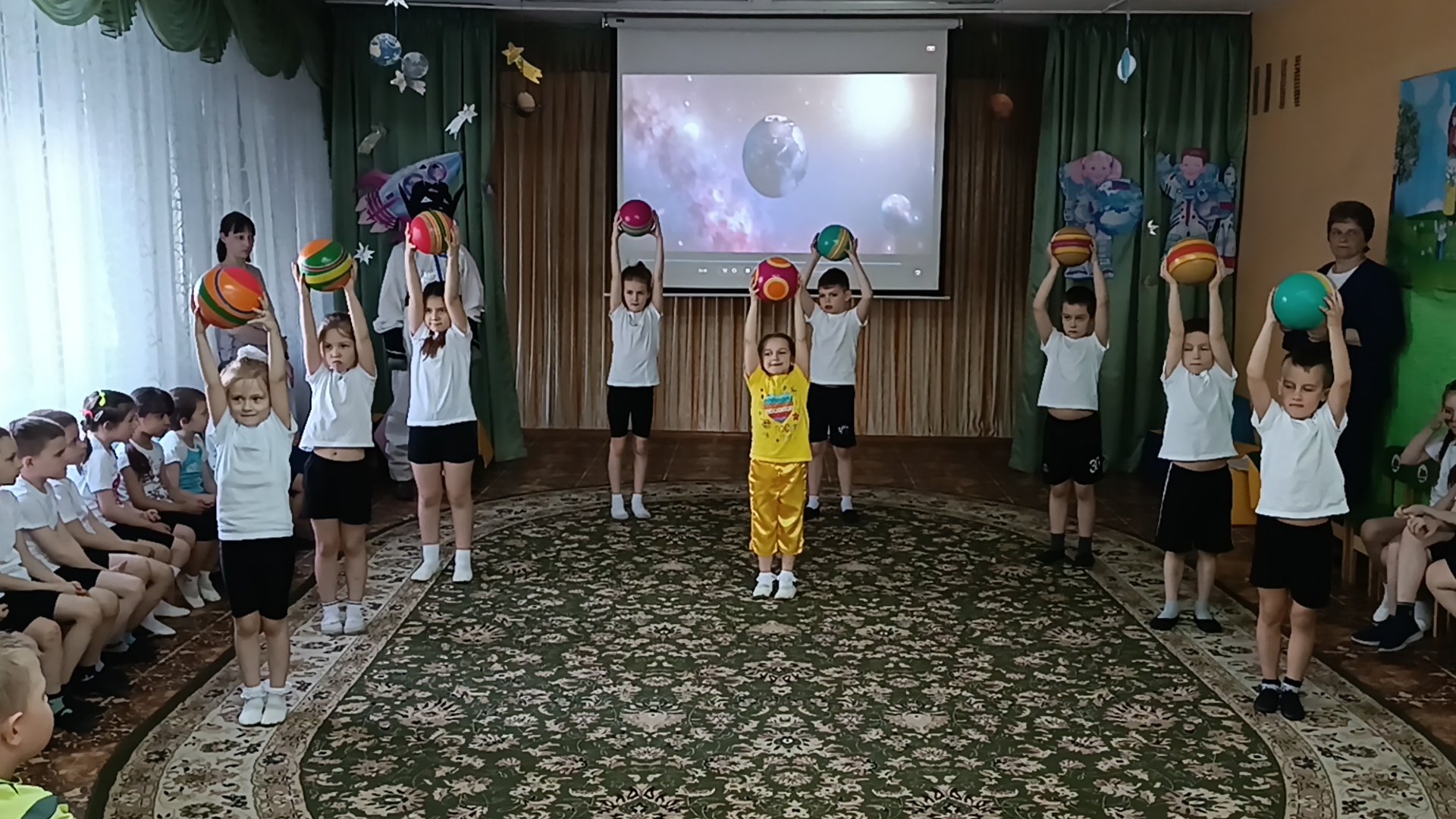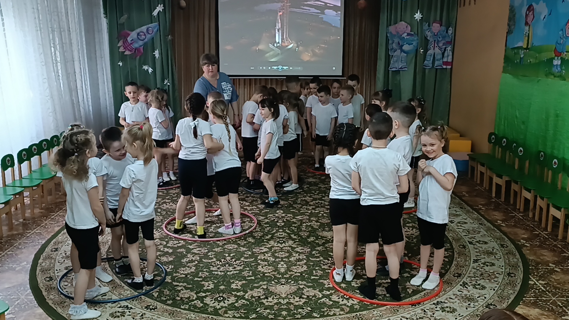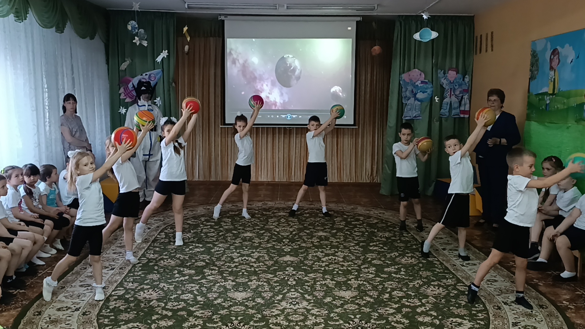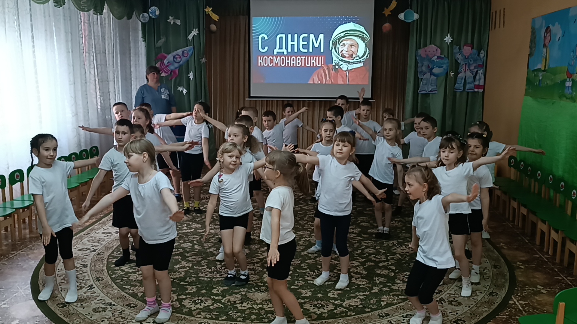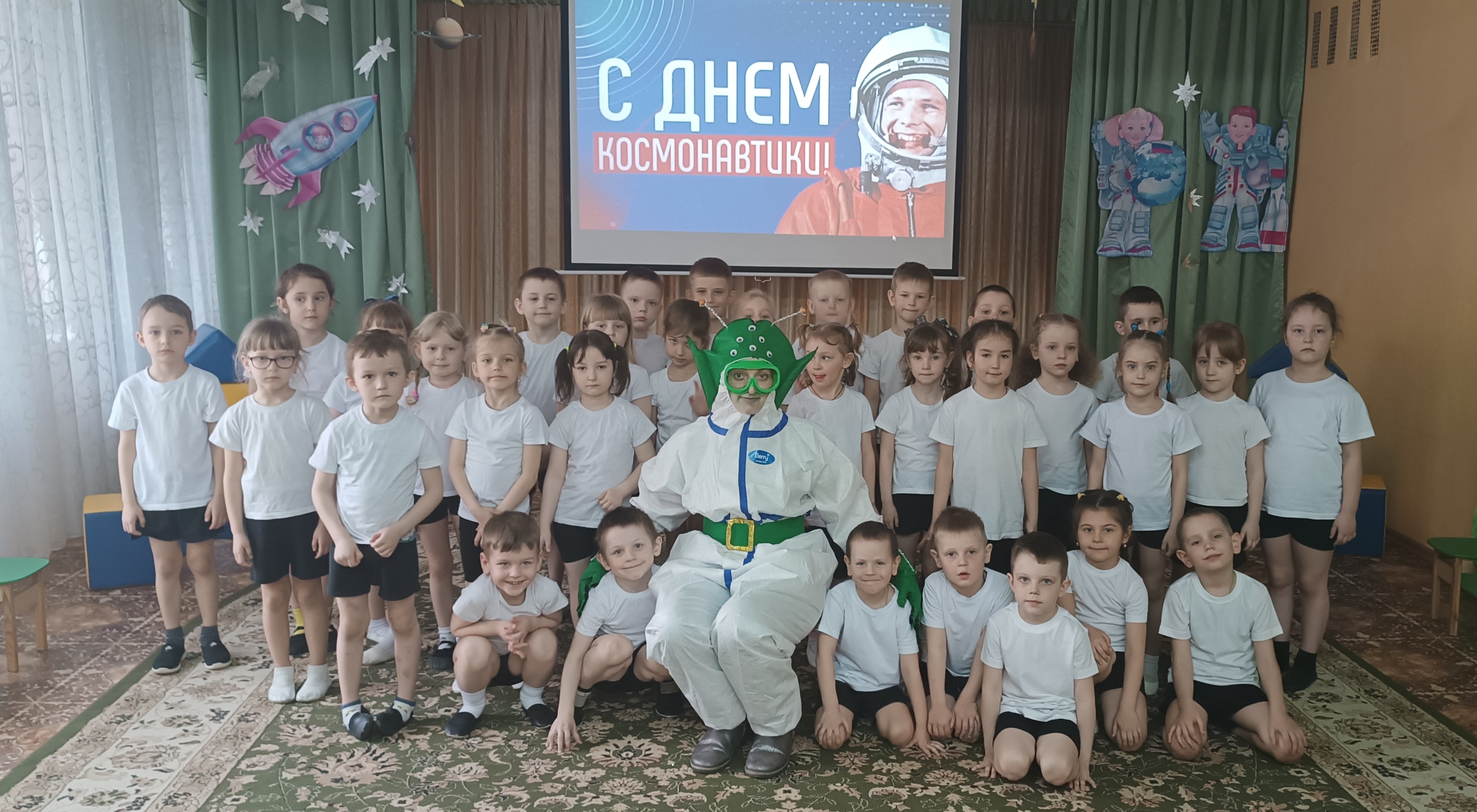 Дети встретились и подружились с Инопланетянами, успешно прошли все испытания, отгадали космические загадки, сделали космическую зарядку, путешествовали по планетам, пели песни, танцевали, принимали участие в космических эстафетах. Перегрузки были почти как у настоящих космонавтов, но ребята справились с ними достойно!