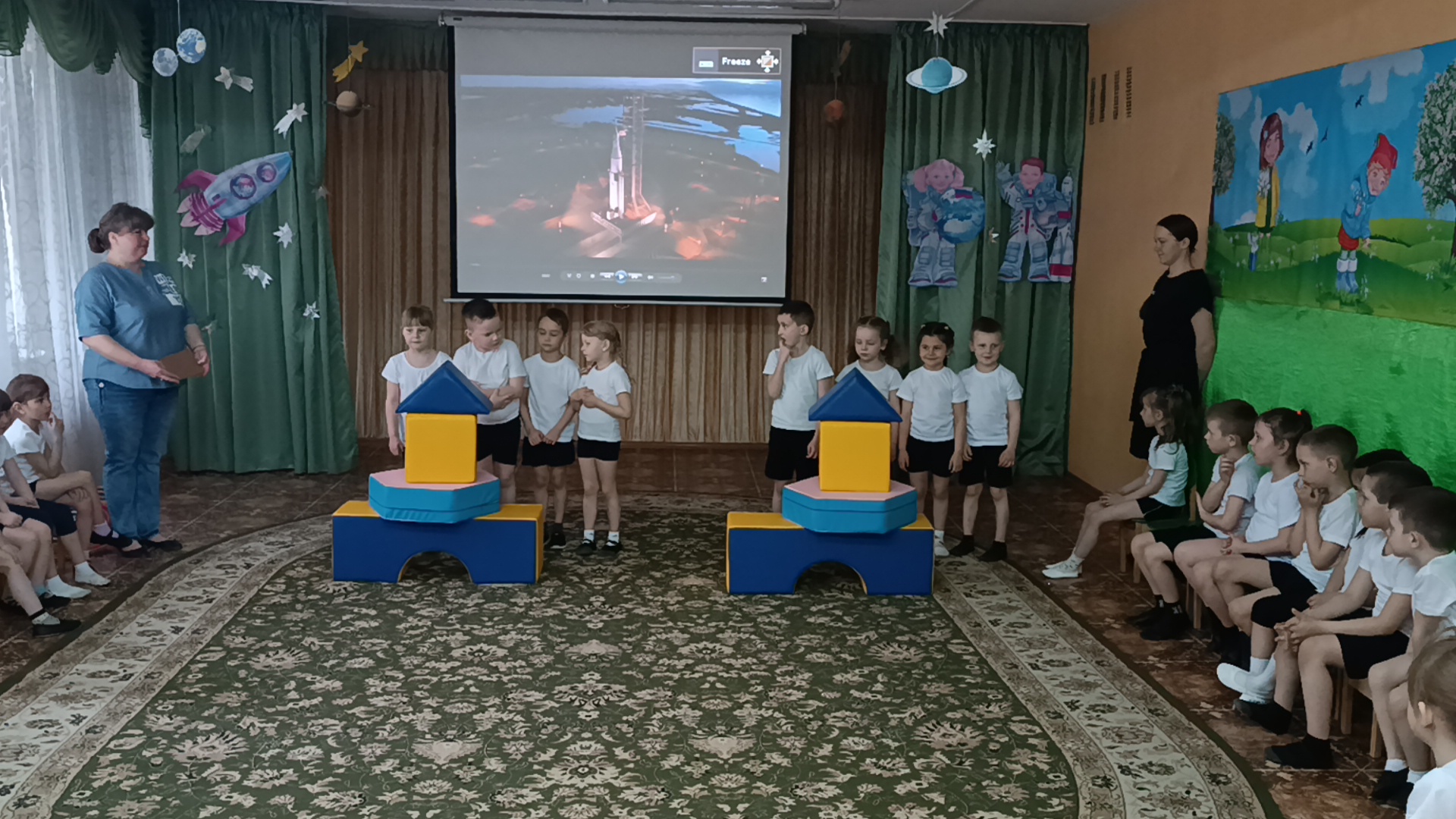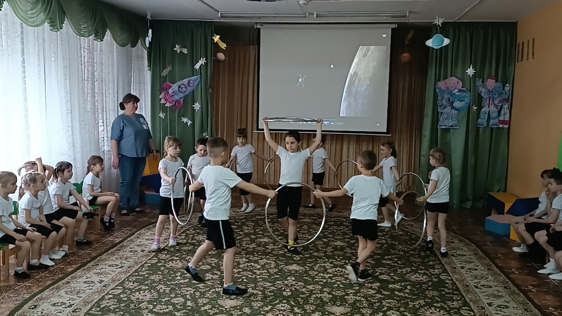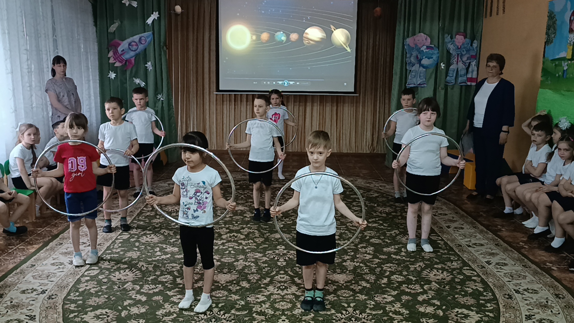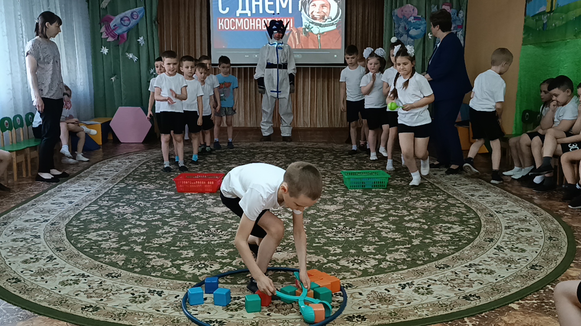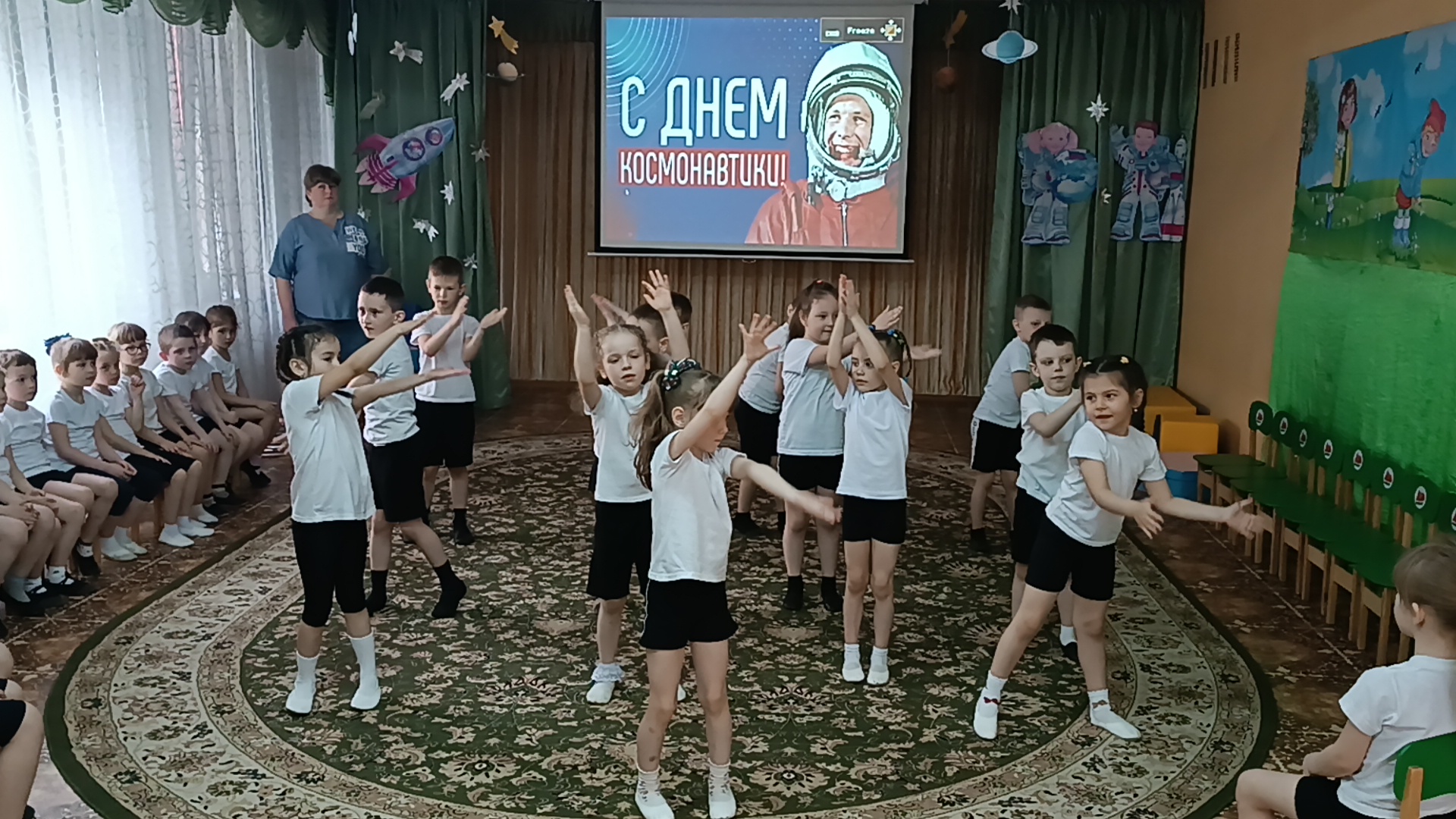 Дети встретились и подружились с Инопланетянами, успешно прошли все испытания, отгадали космические загадки, сделали космическую зарядку, путешествовали по планетам, пели песни, танцевали, принимали участие в космических эстафетах. Перегрузки были почти как у настоящих космонавтов, но ребята справились с ними достойно!