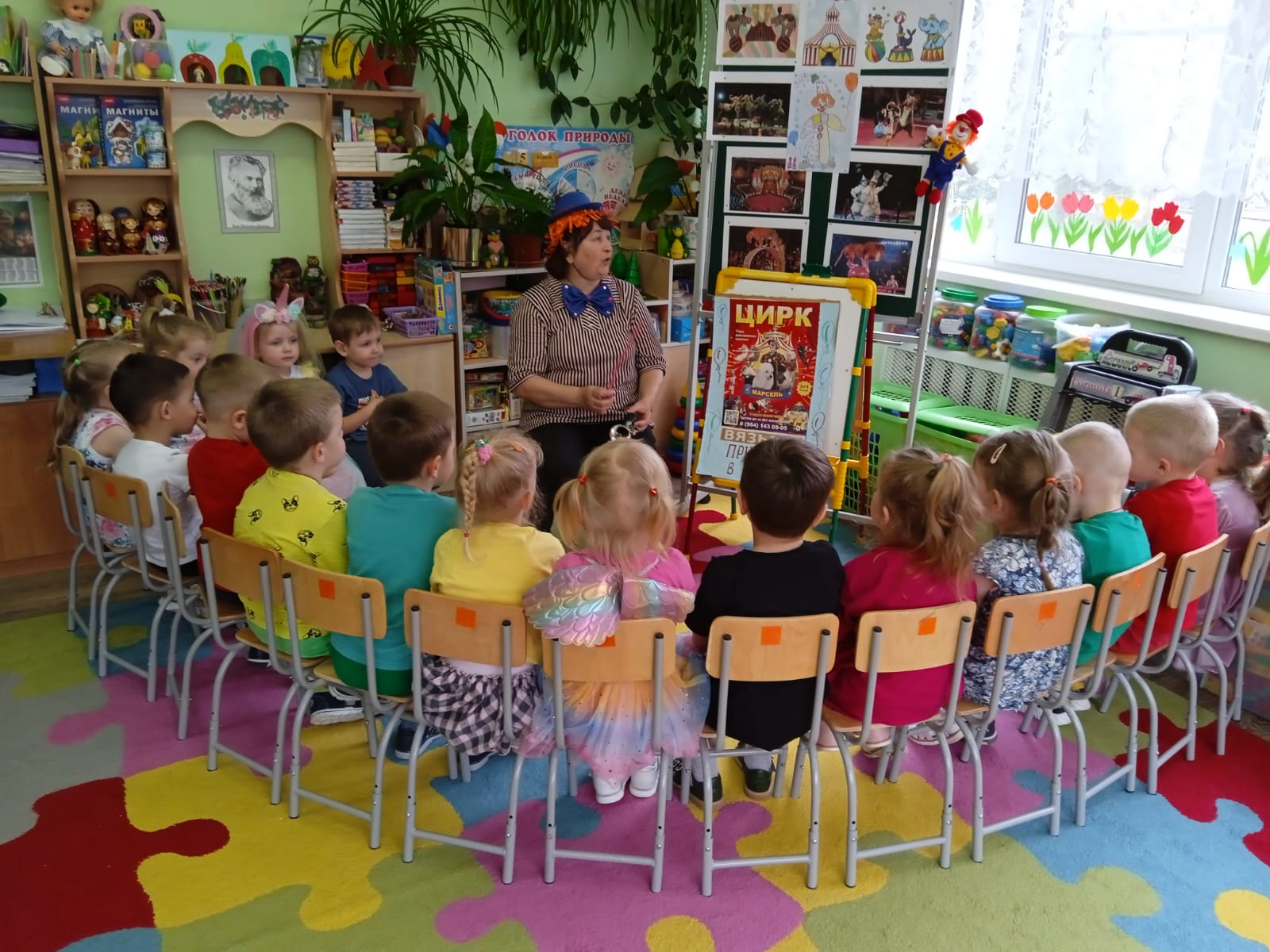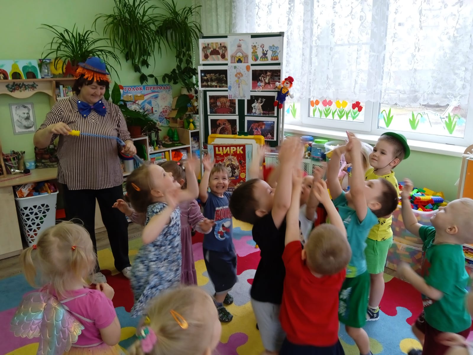 В средней группе № 7 -день 15 апреля был посвящен теме Цирк! Цирк любят все дети без исключения! «С утра я рад, чего-то жду…Ура! Ура! Я в цирк иду! Эту песню исполнял знаменитый клоун Юрий Никулин. С детьми была проведена беседа о цирке и цирковых профессиях, цирковых животных, поиграли в игру-забаву мыльные пузыри, рисовали яркие рисунки, а на физкультурном занятии к ребятам пришли забавные клоуны и поиграли в подвижные игры! День цирка прошел весело и задорно!