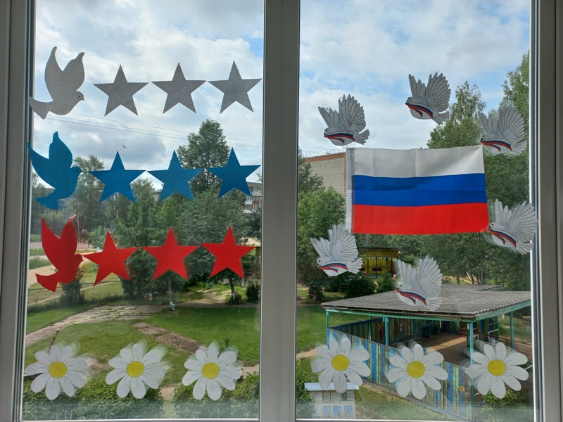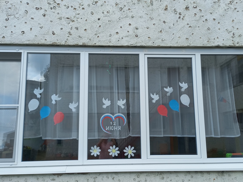 В нашем детском саду стало традицией участие в акции «Окна России», приуроченной к празднику 12 июня. Этот год не стал исключением. Яркие окна украшены рисунками, картинками и надписями, посвящёнными России и её истории, Украшая окна и принимая участие в акции, воспитанники и педагоги детского сада выражают свою любовь к Родине.