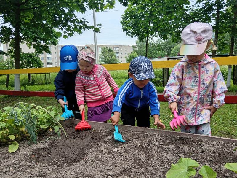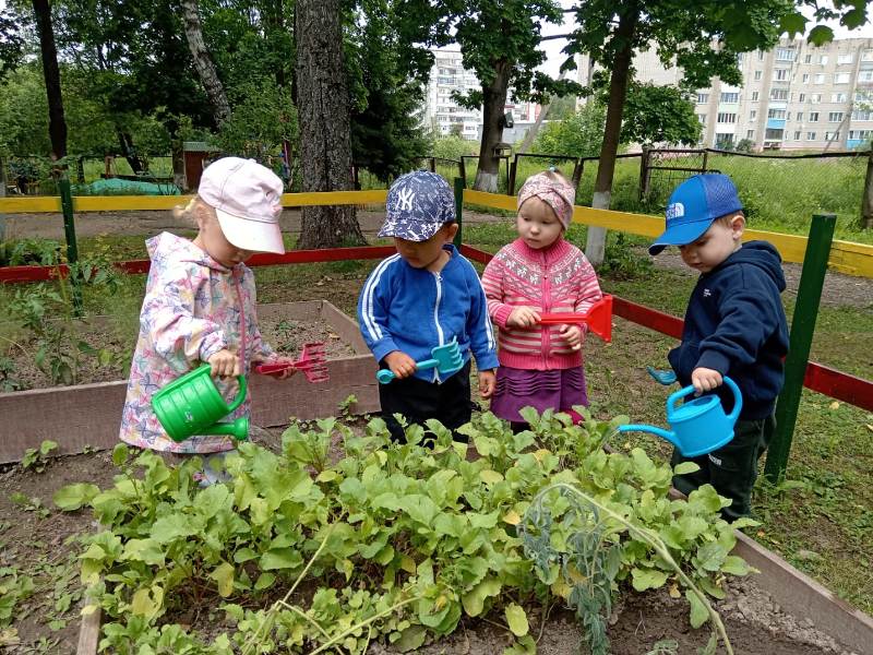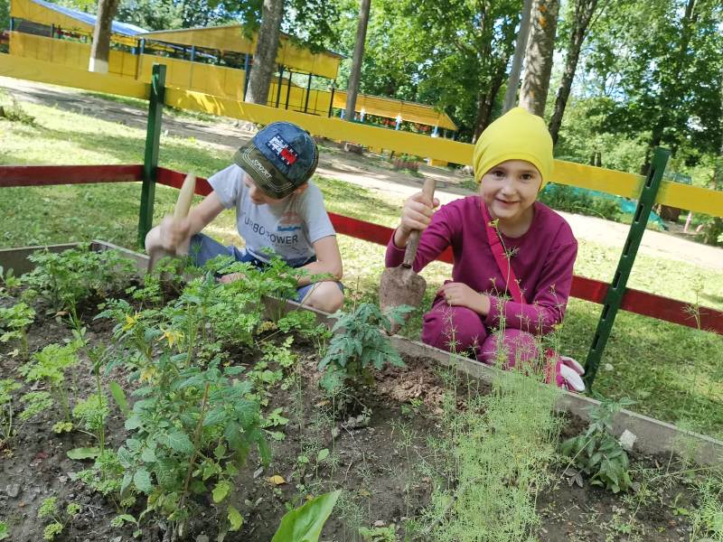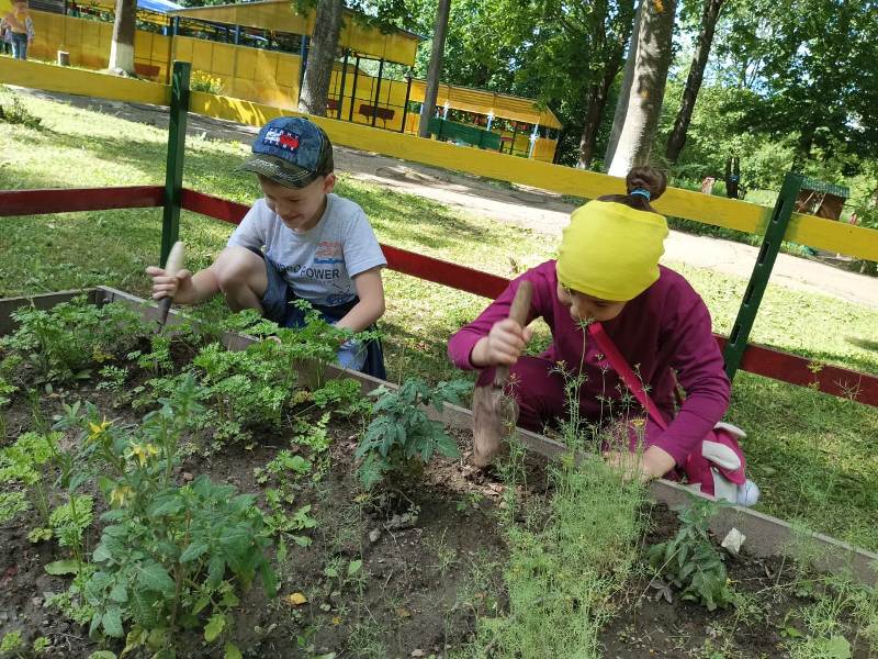 Лето – пора не только игр и отдыха, но и благоприятная пора для трудового воспитания. В нашем детском саду есть огород, на котором ребята поливают растения, помогают пропалывать грядки и наблюдают за развитием культур. С большим удовольствием воспитанники посещают свои участки и с чувством гордости рассказывают друзьям о проделанной работе.