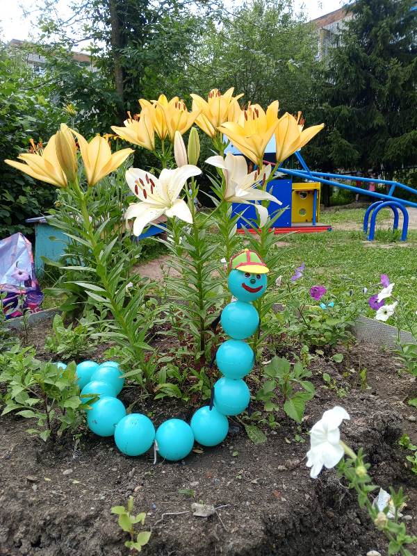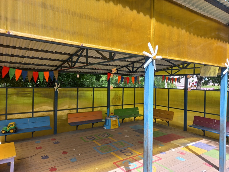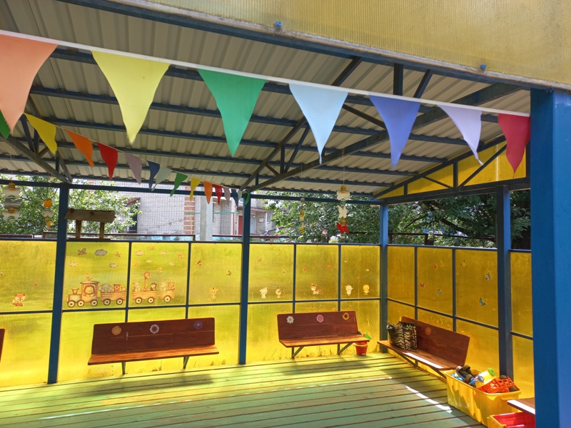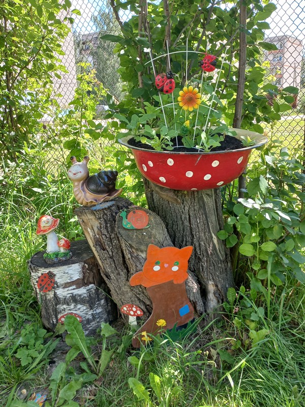 В летний период основную массу времени дети проводят на улице. А чтобы детишки полноценно отдыхали и получали максимум положительных эмоций, взрослым нужно создать определенную атмосферу на участке детского сада: украсить веранду, разместить фигурки различных сказочных животных, создать образы игрушечных персонажей. Ребятишкам нашего детского сада, без сомнения, очень интересно проводить время на украшенных участках и верандах!