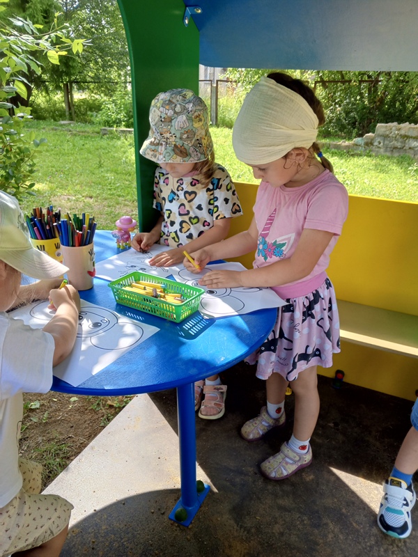 Сегодня разговор у нас пойдёт о сказке. Сказки любят все дети: волшебство и приключения увлекают, развлекают и учат добру и справедливости. С самого раннего возраста каждый из вас соприкоснулся с миром сказки. Когда вы были совсем маленькими, вам их рассказывали мамы или бабушки. Потом вы пошли в школу и сами научились их читать в книжках. Читая сказки, вы проникаете в чудесный таинственный мир, где свершаются самые невероятные события: то Змей Горыныч похищает красавицу царевну и уносит в свои владения, то яблонька награждает трудолюбивую девочку золотыми яблочками, то хитрющая лиса всех водит за нос. Страна сказок — самая удивительная и чудесная страна из всех, и ребята второй младшей группы №5 отправились в эту страну. Детям было предложено разукрасить любимого героя или любимый сказочный эпизод. Ребята с удовольствием рисовали, фантазировали и рассказывали друг другу свои любимые сказки.