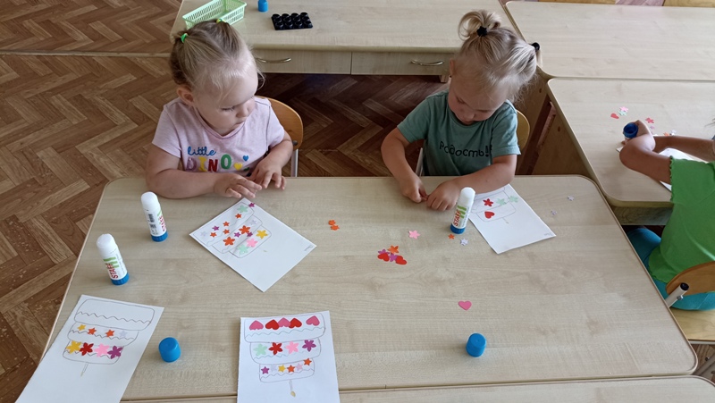 Всем известно, что маленькие дети - сладкоежки, а 20 июля - отмечается Международный день торта! И накануне этого праздника во второй младшей группе №10 прошел тематический день. Мы с ребятами побеседовали о тортах, какие они бывают, из каких продуктов их готовят, как и чем украшают, можно ли есть этот продукт каждый день, чем нужно запивать торт, почему его надо хранить в холодильнике. Далее ребята рассказали об их любимых тортах, а затем украсили тортики яркой аппликацией, получилось очень красиво! А на прогулке малыши испекли праздничный торт из песка для своих игрушек, название «Песочный торт» очень к нему подошло.